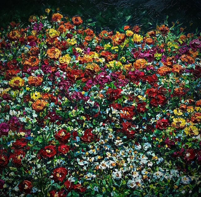 Lynne talks in depth about her various series, including floral paintings on long rolls of canvas that gather on the ground, her landmark paintings, painting on books, her still life and landscape paintings, and her heavily textured sculptural paintings.